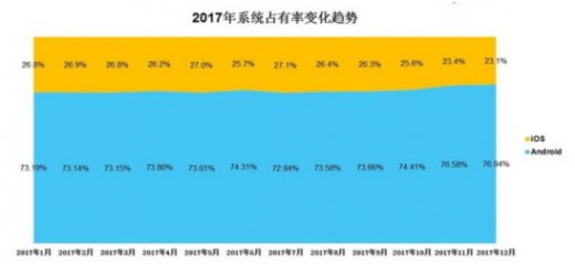 中国手机市场已经进入存量时代;市场竞争呈哑铃型态势,中间品牌用户向第一与第三梯队品牌流转。【友盟 】监测数据显示:2017年,中国存量市场设备数量达11.5亿部,2017年度新增设备4.5亿,其中存量换机高达77%,手机市场销售增长主要来源于存量市场。