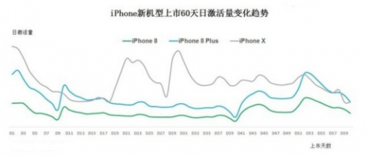 数据及时采集与展示有助于企业快速应对市场态势,发现问题并制定应对策略。例如,一款手机的成功,须要保持其上市后2-3个月内的发展势能。苹果在2017年第四季度先后发布了三款手机iphone 8、iphone 8plus与iphone x,对比三款新机的激活量走势,我们可以看到与x相比,iphone 8系列发布60日内的整体激活量稳中带降,销售并不成功,与iphone x峰值日相比,其激活峰值日晚了一个月,且峰值显著低于iphone x。对手机品牌而言,越快进入销售峰值并保持销售势能的延续,其成功的可能性越大。而对于苹果而言则要反思iphone 8系列的问题到底出现在哪里并制定及时性调整策略。