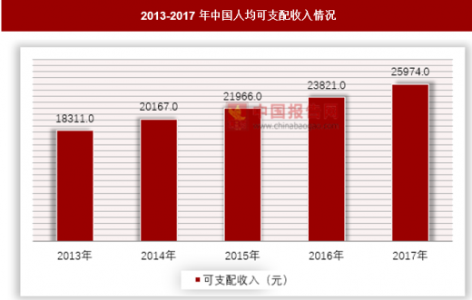 乐器市场的驱动因素之一,在于我国居民生活水平的改善,近年来我国人均可支配收入不断增长,截止2017年已经达到25974元,同比增长7.3%。