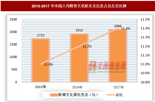 同时,居民在文化方面的支出也保持10%的增长,其支出占比也逐年升高。
