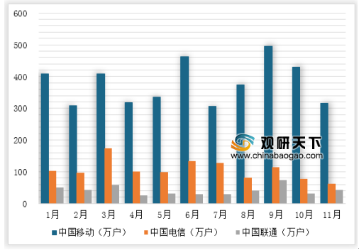 去年前三季度,中国移动有线宽带用户净增3413万户,9月当月大增495.1万户,创下阅读历史记录,中国移动有线宽带用户总数达1.47亿户。而中国电信有线宽带用户为1.427亿,中国移动在宽带用户数上完成了对电信的超越。