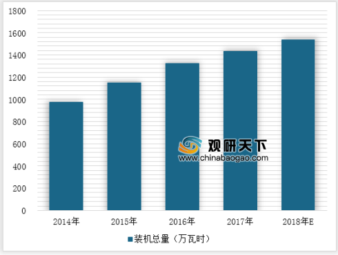 2014年中国核电装机容量为977万千瓦,到了2015年中国核电装机容量突破1000万千瓦。截止到2017年中国核电装机容量为1434万千瓦。2017年中国核电设备平均利用小时数为7108小时,截止到2018年h1中国核电设备平均利用小时数达到了3547小时。2018年中国核电装机容量为**万千瓦