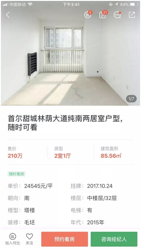 链家显示,首尔甜城一期一套88.51平方米的2室1厅,今年3月5日的成交均价为3.6万/平方米;到了今年10月24日,同样楼盘的一套85.56平方米的两居室,挂牌价位2.4万元/平方米,半年的时间,该处房价每平方米下跌超过1万元。