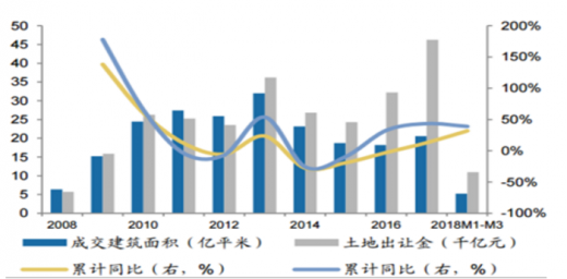 数据显示,2018年一季度300城市土地供给面积金总计为5.96亿平米,比去年同期累计增长35%。成交市场情况,一季度300城市土地成交建筑面积金总计为5.24亿平米,比去年同期累计增长32%。土地出让金情况,一季度300城市土地出让金总计为1.09万亿元,比去年同期累计增长39%。
