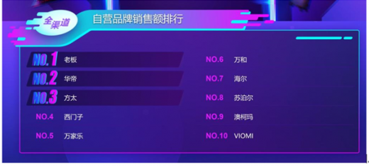 截至今日上午9点40分,苏宁双十一悟空榜烟灶套餐品牌销售额的榜首被老板占据,可见这个老牌家电对消费者的吸引力;在单品销售额排行方面,老板不仅拿下第一和第三名,更有创下5款单品入选的表现,成为烟灶套餐分类的绝对王者。
