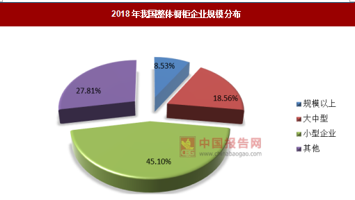 国内整体橱柜的使用率的逐步提高使得我国的整体橱柜企业在数量以及市场占有率上面有了较大的发展。截至2018年9月我国有整体橱柜企业1126个,其中规模以上企业96家,占比为8.53%,大中型企业209家,占比为18.56%。