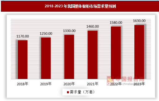 从近年来我国的行业的发展来看,我国的整体橱柜行业仍然处于行业的上升期,预计未来五年橱柜市场复合增速预计将达到8.65%。到2023年,整体橱柜市场需求量将突破1630万套。