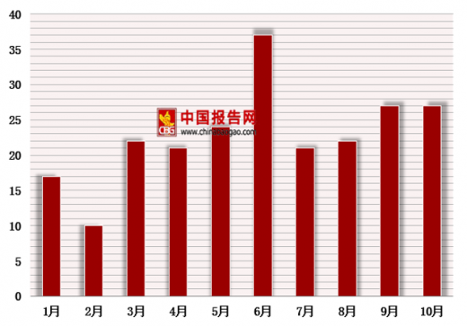 虽然1-10月百强房企总体的业绩规模较上月降低,但单月业绩过百亿企业的数量还是达到了27家,排在全年较高的水平。