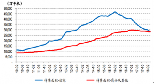房价的上行一定是带来房企利润率上升的必要条件。根据数据显示,2018 年 1-4 月的商品房销售均价为 8,585 元/平米,同比增长 7.6%,较 1-3 月上升 1.1 个百分点。其中, 4 月单月销售均价环比增长 0.9%,同比增长 7.6%,涨幅较 3 月上升 1.1pct。 1-4 月的住宅销售均价为 8,349元/平米,同比增长 9.1%,较 1-3 月下降 0.4pct,其中, 4 月单月住宅销售均价 8,533 元/平米,环比增长 3.3%,同比增长 10.2%,涨幅较上月上升 5.3pct。从库存指标来看, 4 月末商品房待售面积为 5.7 亿平方米,同比下降 16.0%,较 3 月末减少 642 万平方米,其中,住宅待售面积减少 645 万平方米。
