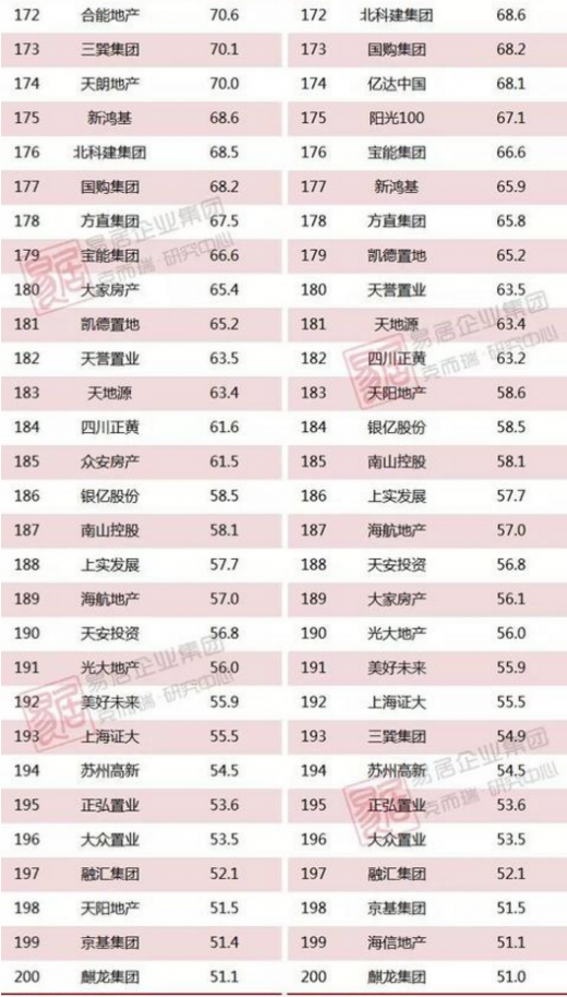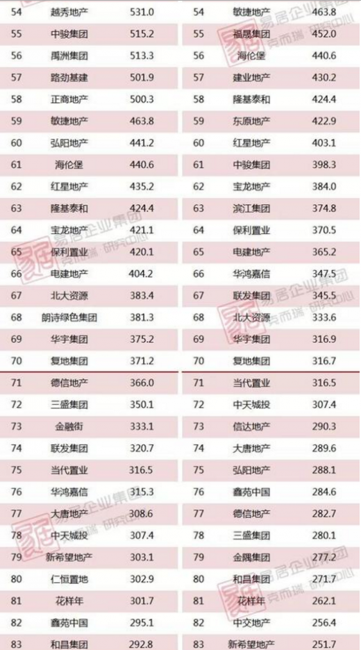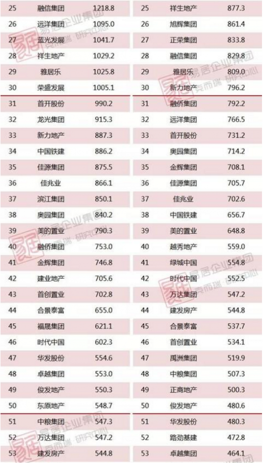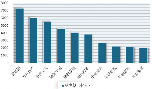 根据数据显示,排名前10名的房企年销售额均超过2000亿元,30家房企年销售额超过1000亿元,58家房企销售额超过500亿元。其排名前10名的房企分别是碧桂园、万科地产、中国恒大、融创中国、保利发展、绿地控股、中海地产、新城控股、华润置地、龙湖集团。