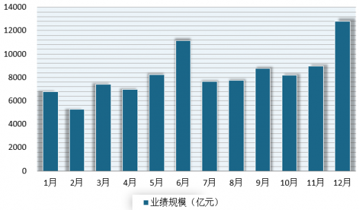 2018年,中国房地产行业整体业绩规模进一步增长,其中top100房企全年的销售金额进一步同比增长35%。自下半年以来,政策调控的效果开始显现,市场预期下滑、行业增速放缓。特别是第四季度,虽然房企推案量大幅增加、项目积极入市,但市场去化表现普遍不及预期。值得注意的是,即使top100房企12月单月销售规模创历史新高,但单月同比增速偏低,并从7月近60%大幅回落至21%左右。