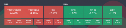 此外,根据选股宝主题库的数据,宁德时代ipo概念股和宁德时代概念股同样领涨,铁矿石、有色等板块领跌。