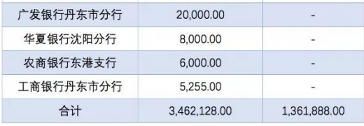 截止2017年6月底,进出口银行已使用授信额度高达38.8亿,工行两家分支机构已使用授信额度超过35亿,中国银行、农业银行、光大银行、辽阳银行和华夏银行等多家金融机构的授信额度已经全部用完!