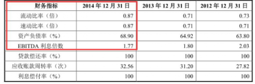 丹东港的核心财务指标长期处于不理想状态。据丹东港债券募集说明书显示,ebitda利息倍数连年下降,2014年就已经下降到只有1.77倍,本应当引起金融机构关注。下图为丹东港债券募集说明书的截图: