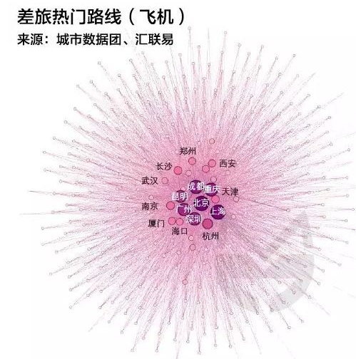 由上图可见,国内飞机的差旅出行呈现出高度中心化特征: