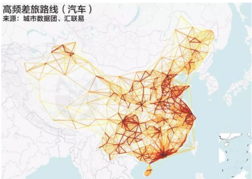 出差路线密集度,或许正从某个角度体现出了某个区域的经济活跃度,体现出了该区域的活力。