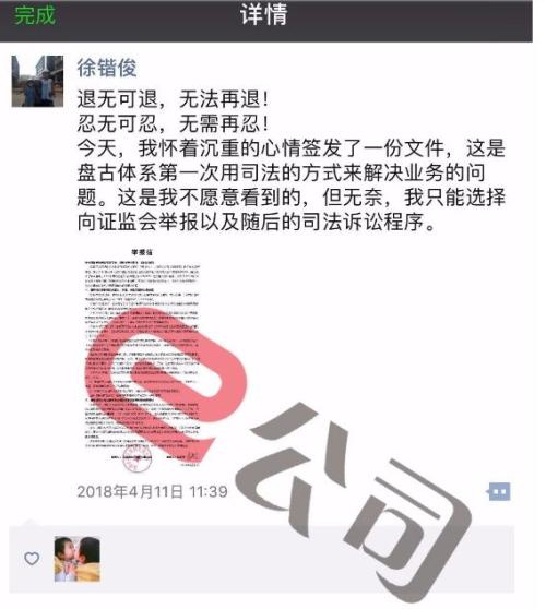 “退无可退,无法再退!忍无可忍,无需再忍!今天,我怀着沉重的心情签发了一份文件,这是盘古体系第一次用司法的方式来解决业务的问题。这是我不愿意看到的,但无奈,我只能选择向证监会举报以及随后的司法诉讼程序。” 四川金顶重组迷雾