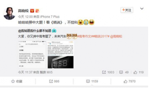 其实就往年来说,押中题目的人,还是挺多的,比如高晓松在节目中侃到的“未来汽车”,比如许嵩的歌曲《深夜书店》,押中去年的作文题目。