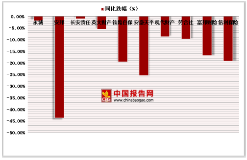 产险公司中,前三季,共有十家险企原保险保费收入出现同比下滑的趋势,中资、外资各占半壁。其中安邦产险跌幅最大,同比缩减43.7%,仅实现原保险保费收入29.19亿元;外资产险公司安盛天平也出现25.36%的同比跌幅,前三季共计实现44.63亿元原保险保费收入。此外,信利保险、富邦产险、劳合社、铁路自保等也均现同比下滑趋势。
