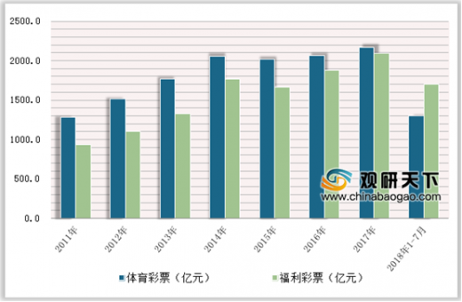 福利彩票和体育彩票发行的初衷是为中国公益事业和体育事业的发展筹集资金,以弥补国家财力不足,所以最初国家对彩票资金的构成比例有着统一的规定,返奖率只有35%,而提取的公益金比例高达50%。2017年,我国福利彩票机构销售2169.77亿元,同比增加104.85亿元,增长5.1%;体育彩票机构销售2096.92亿元,同比增加215.43亿元,增长11.4%。2018年7月,我国累计销售体育彩票1297亿元,福利彩票1701.4亿元。