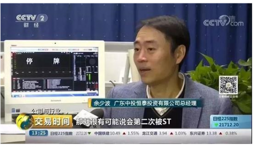 广东中投恒泰投资有限公司总经理余少波:现在的公司负债率非常高,因为短期中期和长期的负债,有30个亿左右了,那么短期需要还的债就20亿左右,公司现在它能够动的流动资金,大概也就是6到7个亿左右,离20个亿这个缺口非常大,这个我相信上市公司心里很清楚。那么我们如果在年报方面或者说我们一个公告出来,告诉你公司现在是出现了意外的情况,我们可能会造成很大幅度的亏损,那么这一块其实相应是给自己减了负。