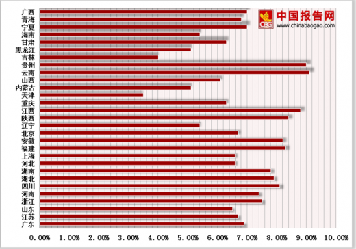 增速较快的还有江西、陕西和福建,三省份分别以8.8%、8.4%和8.3%的经济增速排名全国第三、第四和第五。吉林和天津增速垫底全国,两省份前三季度经济增速分别为4.0%和3.5%。