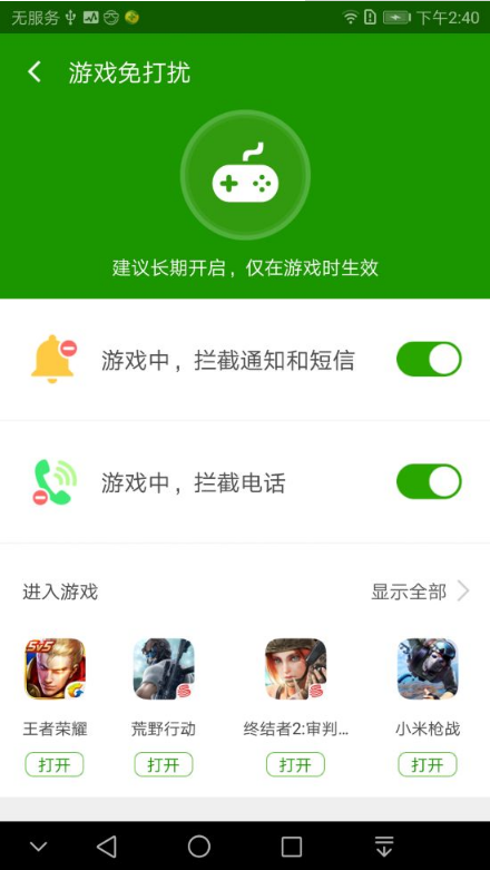 然而与pc游戏相比,手机游戏的一大弊端就是时常会弹出的提醒窗口。此前甚至有媒体报道玩家在玩《王者荣耀》时因女朋友打电话中断了游戏而提出分手。可见,针对弹窗与电话的“游戏免打扰”功能已经与系统清理、加速一样,成为当今手游玩家的刚需。