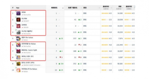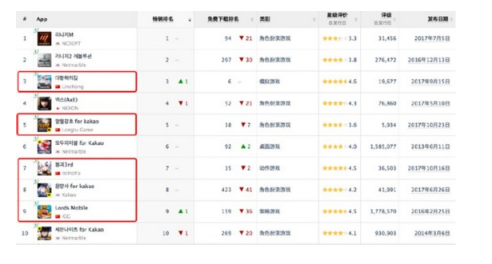 app store畅销排行top10中仅有三款游戏不属于韩国三巨头旗下