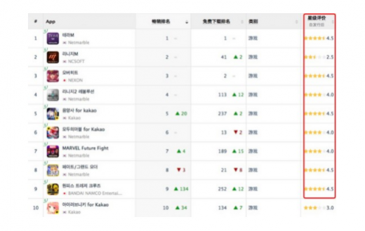 从韩国app store游戏畅销榜中的评级可以看出,有不少低评分游戏赫然出现在畅销榜前排。在评价中能够发现,很多玩家对游戏的氪度和肝度存在不满,大部分玩家都认为游戏过于重度,而对于游戏本身的可玩性,则少见有玩家抱怨。这样的玩家对于那些有实力的中国厂商来说,就是一个非常大的机会——不用拼那些浮夸的噱头,让可玩性重新回归产品卖点的核心。