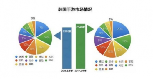 韩国的游戏市场的中的主流游戏类型也确实比较偏向硬核。在2017年上半年,rpg游戏占据了总数量的15%,尤其是头部产品中,多为韩国本土rpg产品,外来厂商想在这个品类下分一杯羹,很难。