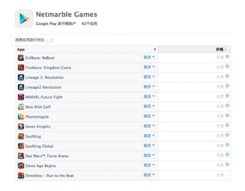 netmarble的谷歌发行商账户下的游戏