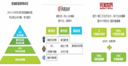 目前国内端游主流电竞游戏以海外研发商为主导,国内运营商打造国内赛事体系。电子竞技项目主要来自这三家游戏开发商:riot、blizzard以及valve。三家厂商在电竞游戏和赛事模式上各有千秋:riot依托腾讯的强大的推广能力打造了最成熟的赛事体系,开发商和运营商共同主导职业联赛、城市赛、网吧赛,形成兼顾职业和业余的立体化赛事体系;blizzard以自身游戏系列入手打造综合性的联赛体系,在中国主要是和代理商网易合作打造黄金联赛系列;valve主要依靠dota2国际邀请赛这一世界级别赛事建立单一项目的赛事体系,未来的看点在于cs:go进入中国。与之对应的是国内三家游戏运营商腾讯、网易和完美世界,借助与上游发行商的深度合作别打造了各自的联赛体系。