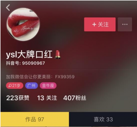 同样的,记者在另一目前广受年轻人欢迎的短视频app抖音中也发现同样的销售行为,比如某抖音用户上传的短视频展示了防制香奈儿、兰蔻、ysl等大牌化妆品、护肤品的经过,在其留下的微信号中不仅能买到山寨的大牌,还能买到仿制大牌所需的口红管、粉底盒等包材。