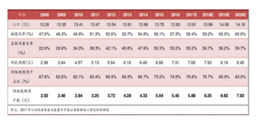 预计2020年我国网络视频用户有望超过7亿。根据历史数据以及海外经验,我们认为虽然我国互联网普及率、网民规模增速将逐步放缓,但未来互联网普及率会接近我国城市化率,预计2020年我国互联网普及率达60%,网民数量有望超过8.45亿,其中网络视频用户有望达到7.02亿,比2016年的5.45亿增长28.8%。