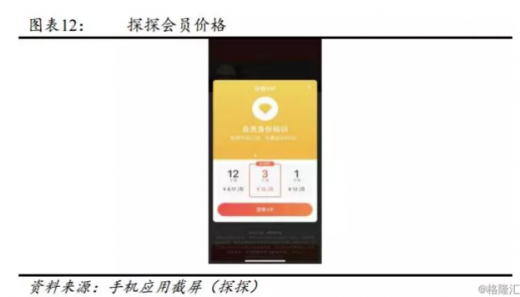 2017q3探探开始其付费会员计划,其vip会员可享有如下特权:会员身份标识、每天5个“超级喜欢”、滑错无限返回、任意更改定位、以及无限喜欢次数。付费价格随着时间延长而折扣力度加大,最高12个月会籍仅需8.17/月。探探在用户增长与变现方面运营较为克制,dau由2017年6月d轮融资到此次收购仅增长100万,而采用会员增值的变现方式就目前来看对于用户体验的伤害较低。探探维持了良好的产品生态与社区氛围,其平台的噪音比例较低。
