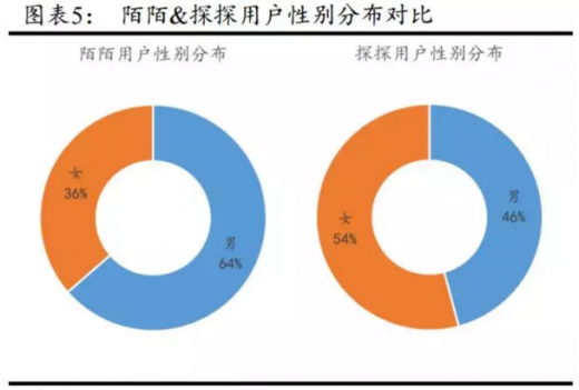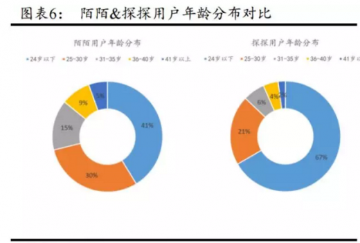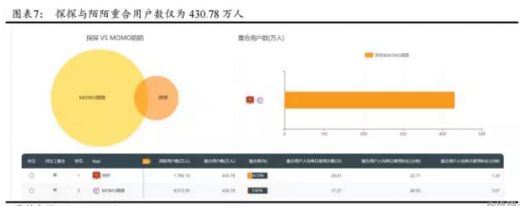 陌陌与探探的用户重合度低,在用户年龄结构、性别比例以及产品对于用户隐私保护度上均有互补。