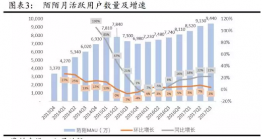 经历了陌陌用户数随着直播业务的开展而快速增长,2017q3mau环比增速连续5个季度首次出现下滑,而与之匹配的则是陌陌在营销投入上的增多,连续两个季度的品牌广告投放以及拉新活动拉低陌陌的利润率。在移动互联网手机红利逐渐消退以及流量成本快速增长的背景下,通过收购探探,陌陌可获取这部分新增流量,并通过探探平台收割未来的陌生人社交流量。依据questmobile数据,探探拥有月活跃用户数1,786.10万人,公开资料显示其dau达700万人。