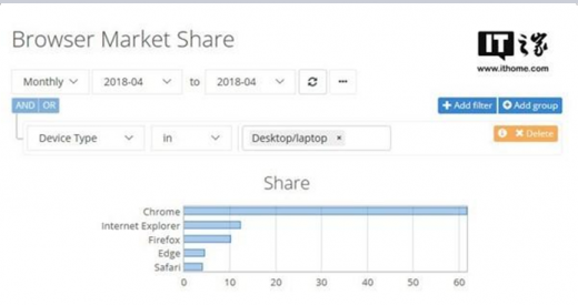 it之家5月3日消息 刚刚进入5月份,调查统计机构net market share发布最新的4月份报告,在全球浏览器市场,包括谷歌chrome、firefox和微软edge市场份额出现小幅下降,而internet explorer则出人意料地出现上涨。另外,随着微软推出2018 windows 10更新四月版更新,数据显示win10操作系统市场份额出现小幅下降。