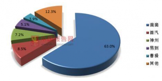 现阶段我国约有70多家网约车公司,行业竞争日趋激烈,滴滴出行一支独大。主要集中在在一、二线城市,其渗透率分别为40.1%和17.3%。数据显示,2018年5月网约车用户规模达1.88亿人,渗透率16.9%。其中滴滴出行app由于拥有快车、专车、顺风车等多种出行业务使得其渗透率数据优势明显,占据市场第一位,其渗透率达到了约63%。