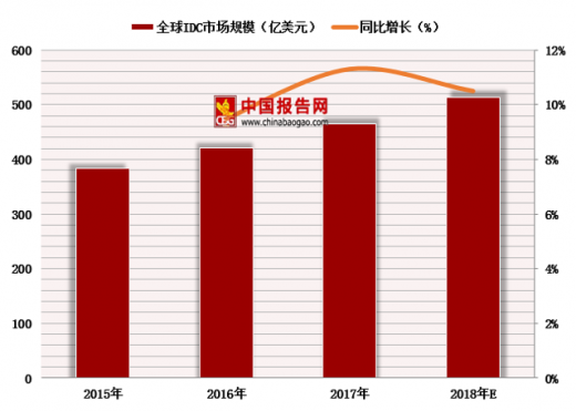 2017年全球数据中心市场规模达到465.5亿美元,稳步增长,2018年有望超过500亿美元;同时国内idc行业市场规模达650亿元左右,2012-2017年复合增长率为32%。