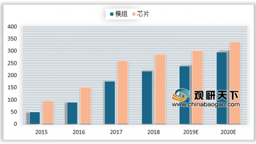 物联网模组与芯片作为关键器件迎来爆发期,预计2020年国内无线模组市场规模达到296亿元,芯片市场规模达到338亿元。