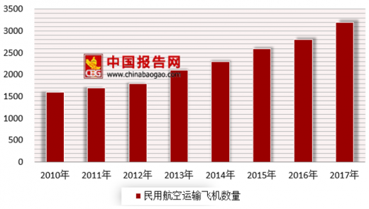 作为民航发展的基础,飞机和机场的数量与规模不断增长。截止2017年,我国国内民航运输机队规模快速增长,数据显示,2017 年全年我国引进飞机 424 架,在运营机队总规模达 3261 架。