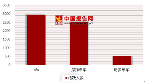 现阶段我国共享单车ofo摩拜三强格局稳定。根据数据显示,ofo移动端应用以2937.7万人的活跃人数位居榜首,摩拜单车以2526.6万人紧随其后,位列第三的哈罗单车活跃人数为529.1万人。