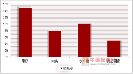 我国生鲜食品在运输中冷链物流的使用率较低,生鲜食品在流通中损耗率较高。目前,我国的果蔬、肉类、水产品的冷链物流的使用率分别为35%、57%、69%,相较于美国来说处于低位。