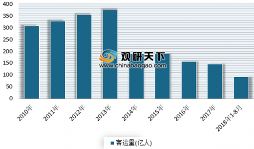 同时,随着科学技术的发展,在中占据着越来越重要的比例,沿线客运受到了非常明显的影响。从2012年开始,公路客运量呈明显下滑趋势,2017年1-12月中国公路客运量为145.9亿人,同比下降5.4%;2018年1-8月中国公路客运量为91.8亿人,同比下降7.1%。