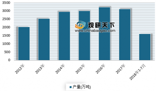 2012年-2016年全国电动自行车产量逐渐增长,2016年全国电动自行车产量为3215万辆,同比增长4.41%。2017年全国电动自行车产量有小幅度下降,2018年1-7月全国电动自行车产量为1598.3万辆,同比增长5.33%。