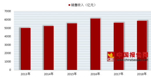 而销售收入方面,2017年销售收入同样出现下滑,达到5531亿元,2018年销售规模预计在5875亿元。